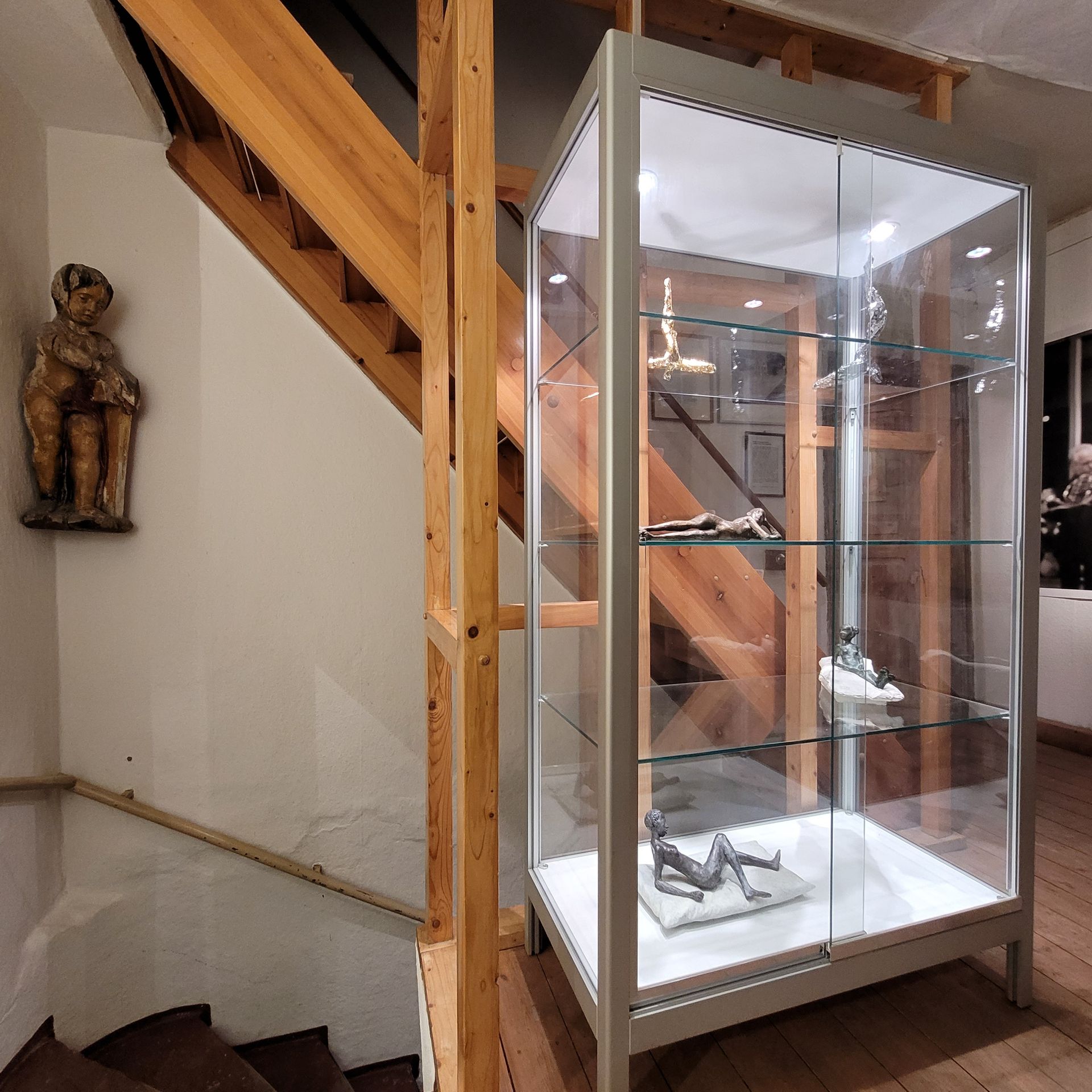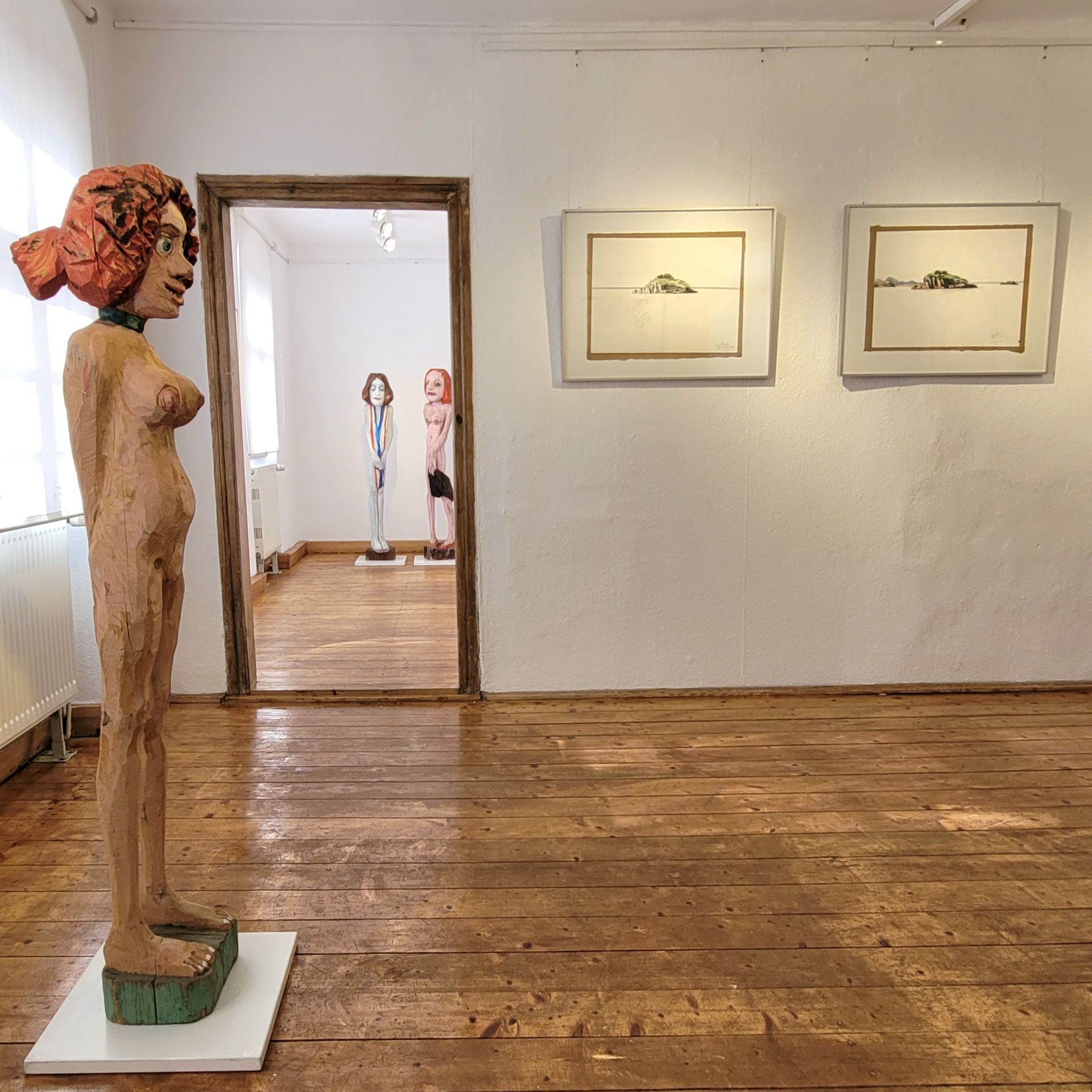 Positionen vor. Im Flurkabinett ergänzen die Plastiken von Sybille Reuß und die Grafiken