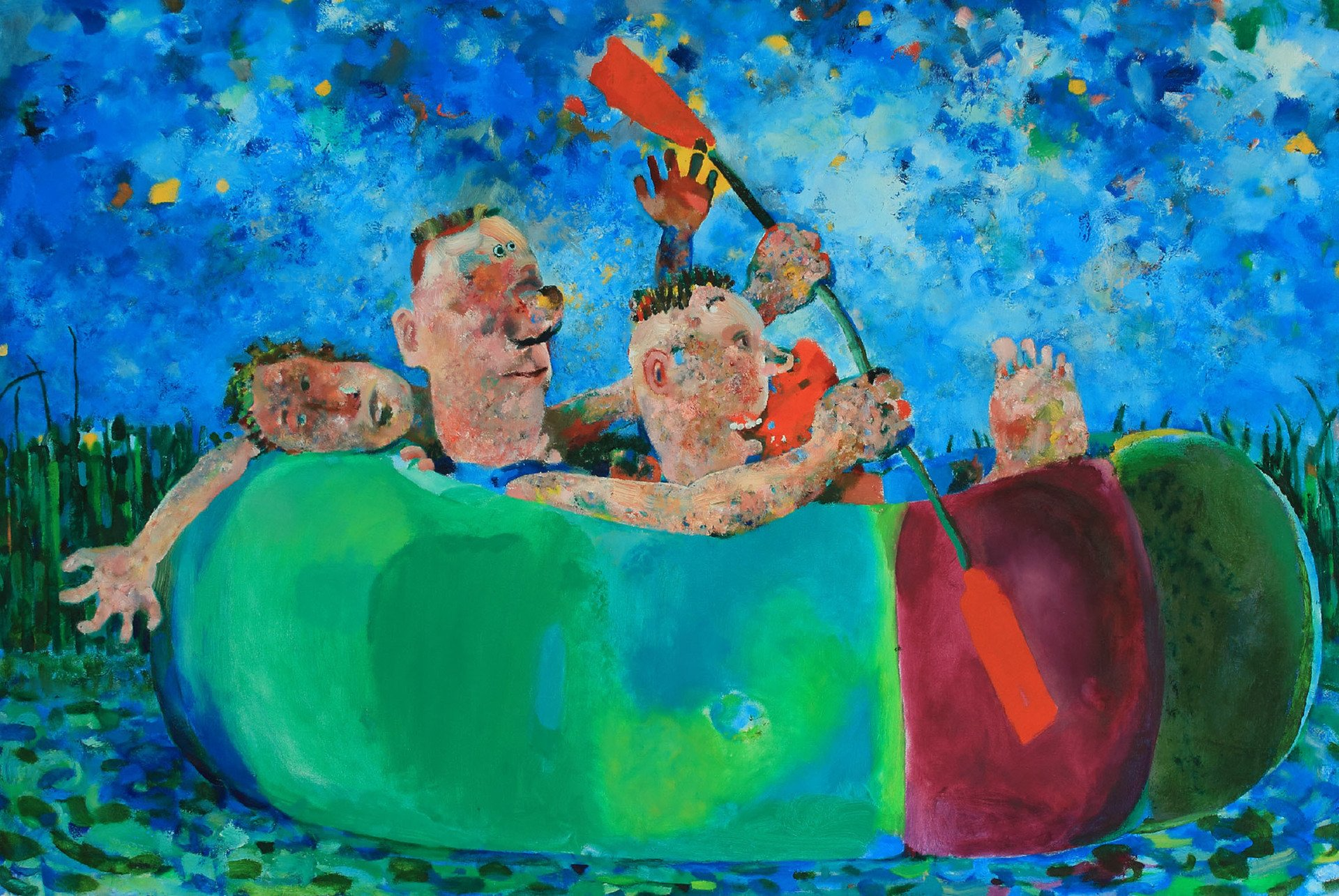 „der schöne Samstag“ im Einnehmerhaus Freital zeigt neue Arbeiten vom Dresdner Künstler Lucas Oertel. Ein Badesee, eine Liegewiese, Freizeit. Auf farbenprächtigen Bildern entfaltet sich ein sommerlicher Tag, voll saftigen Grüns und schimmernden Blaus, dargeboten mit ironischem und hintergründigem Witz.
